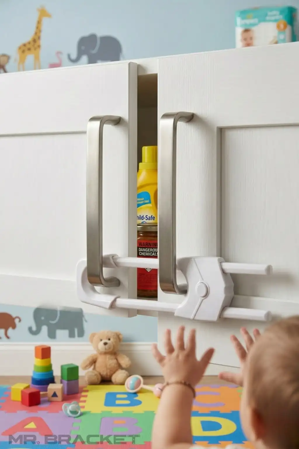 2'li Ayarlı Sürgülü Model Çocuk Güvenlik Kilidi - Kulplu Çift Kapaklı Dolap Çekmece Deprem Kilit