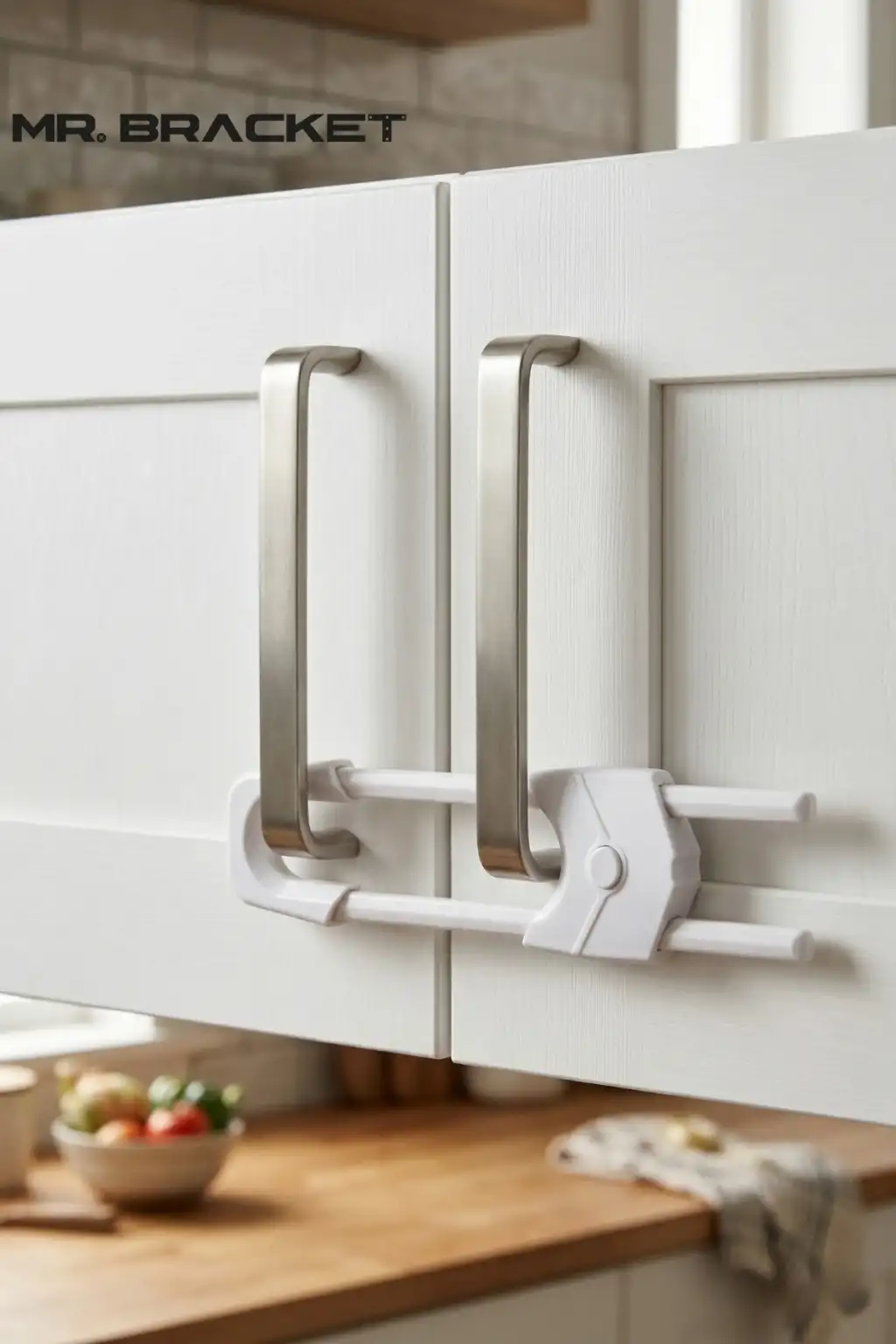 2'li Sürgülü Model Çift Kapaklı Kulplu Dolap Kilidi - Bebek Çocuk Deprem Güvenlik Çekmece Kilit