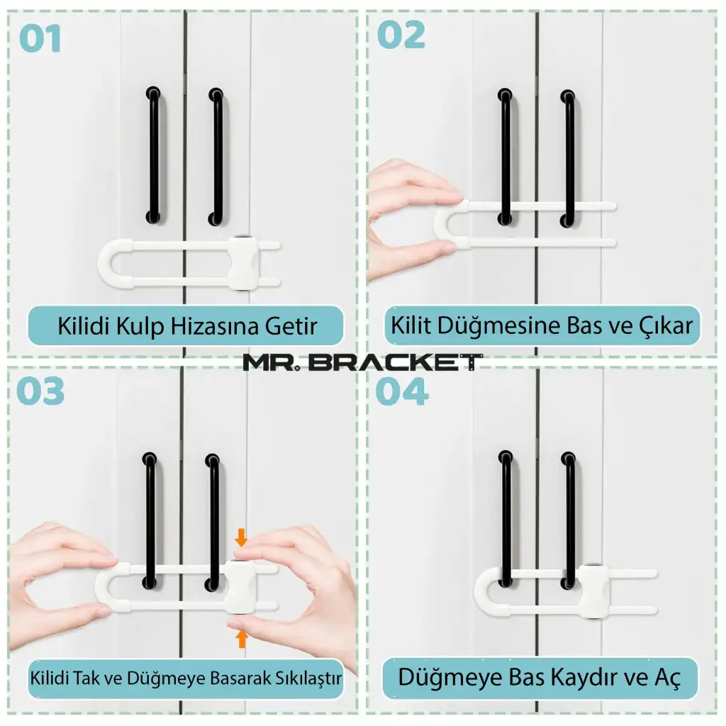 Kolayca takılabilen ve çıkarılabilen bu kilitler, çocukların erişimini engelleyerek depolama alanlarını daha güvenli hale getirir.