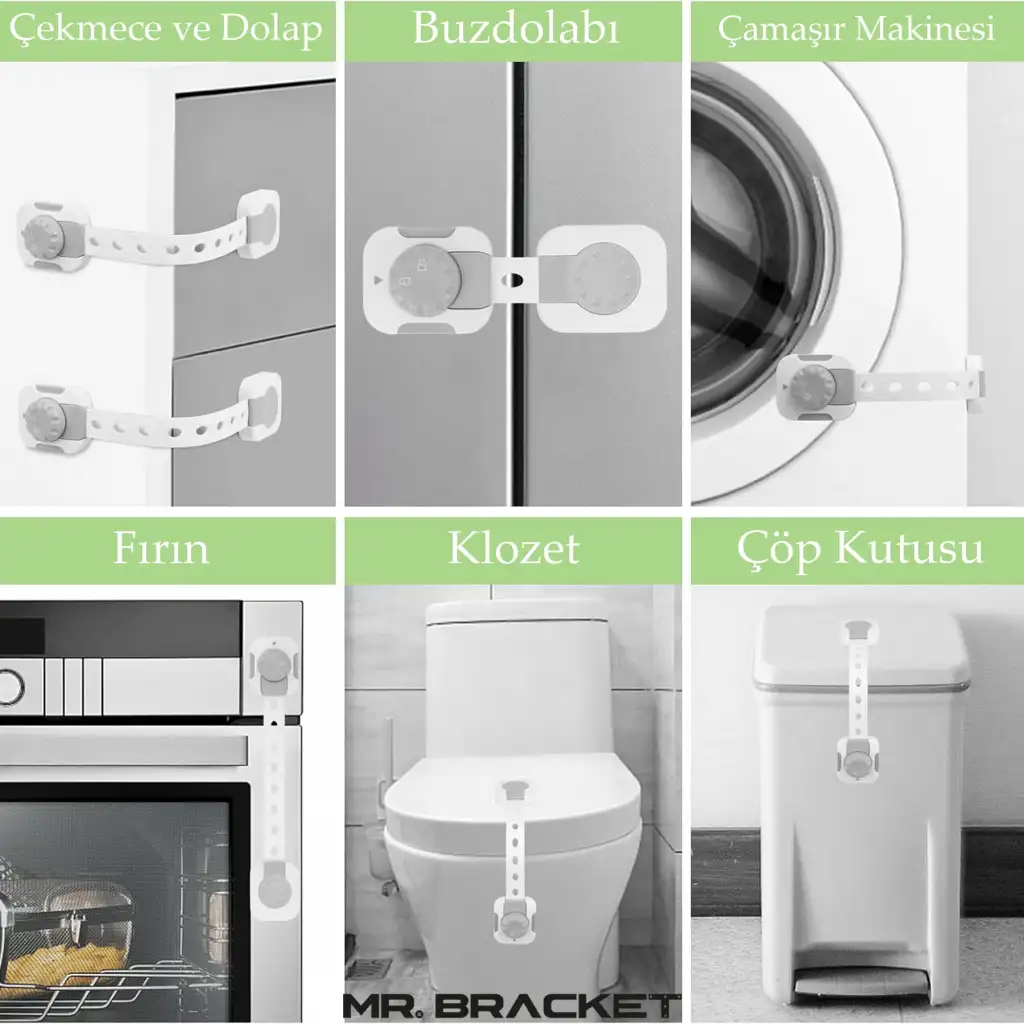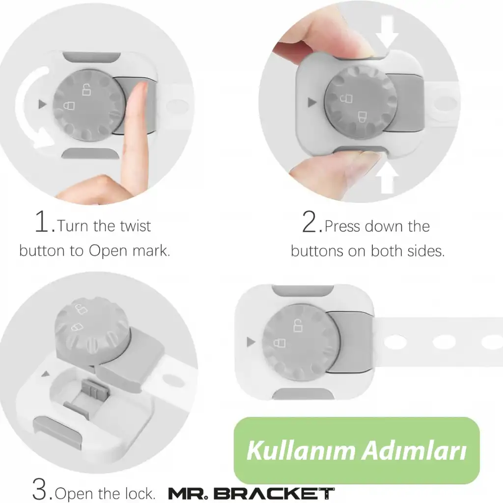 Bebeklerin güvenliği için özel olarak tasarlanmış, ayarlanabilir yapısıyla çocukların kolayca erişemeyeceği bir kilitleme çözümü sunar.