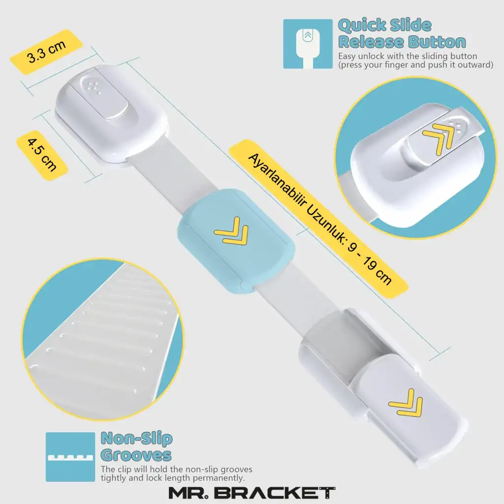Çocukların güvenliğini ön planda tutan ayarlanabilir çok amaçlı mobilya dolap çekmece kilidi, bebeklerin erişimini engelleyerek olası kazaları önler.