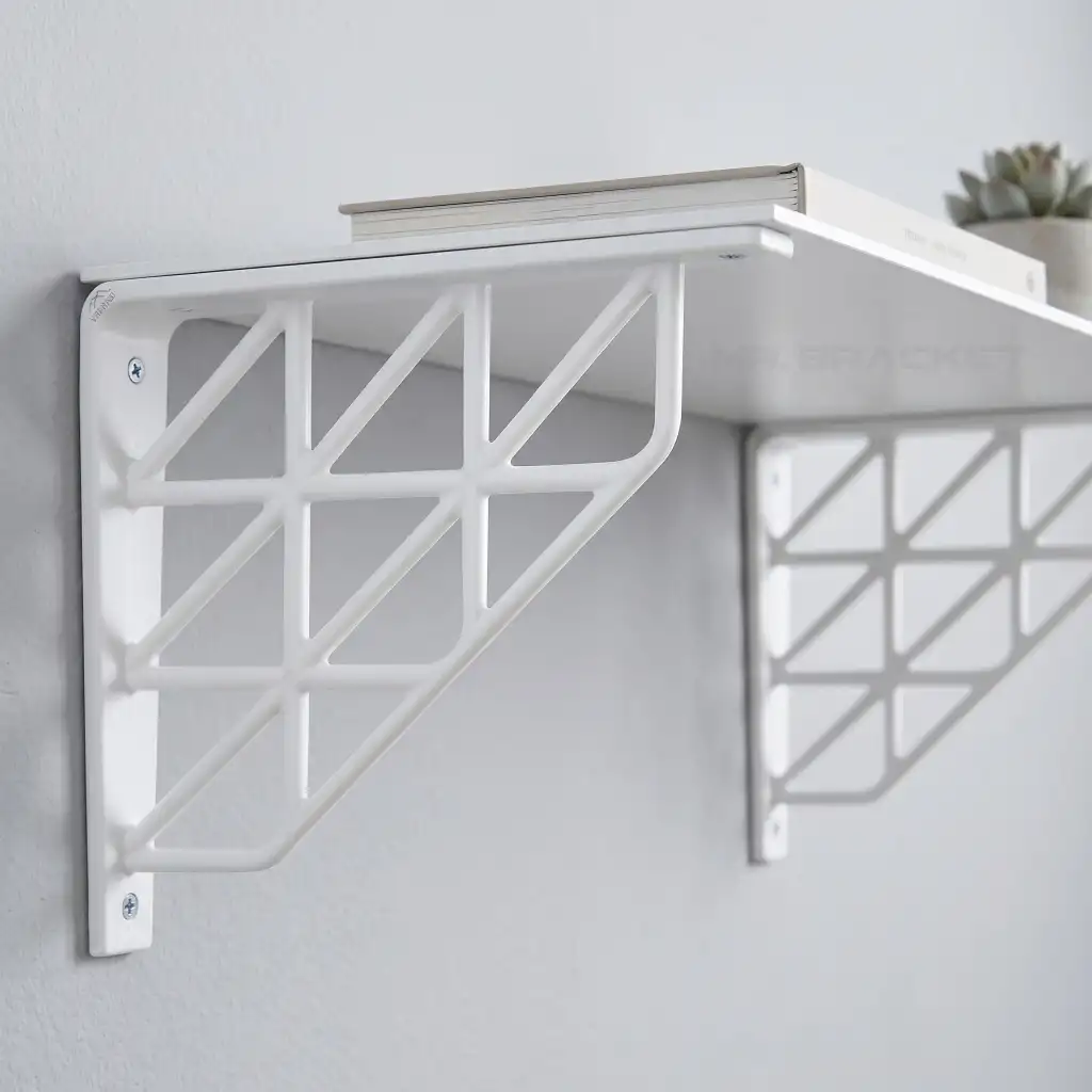 Beyaz Üçgen Desen Plastik Raf Altı Tutucu Ayak 18cm - Banyo L Raf Ayağı Duvar Montaj Destek Aparatı