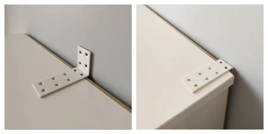 16x60x90 mm - Beyaz Çelik Deprem Dolap Sabitleme Aparatı - Orta Yük Mobilya Eşya Sabitleyici Kit - Şifonyer Tv Ünitesi Masa Kitaplık Duvar Sabitleme L Demiri