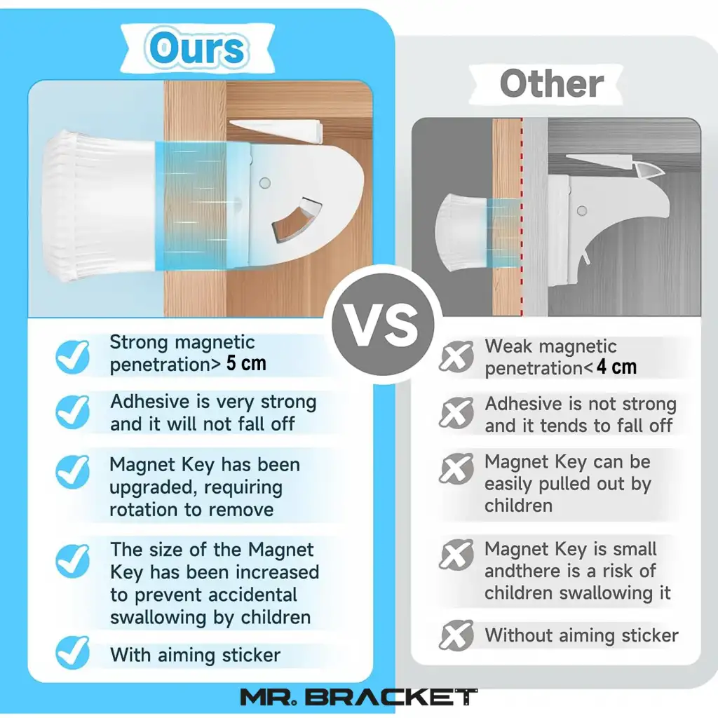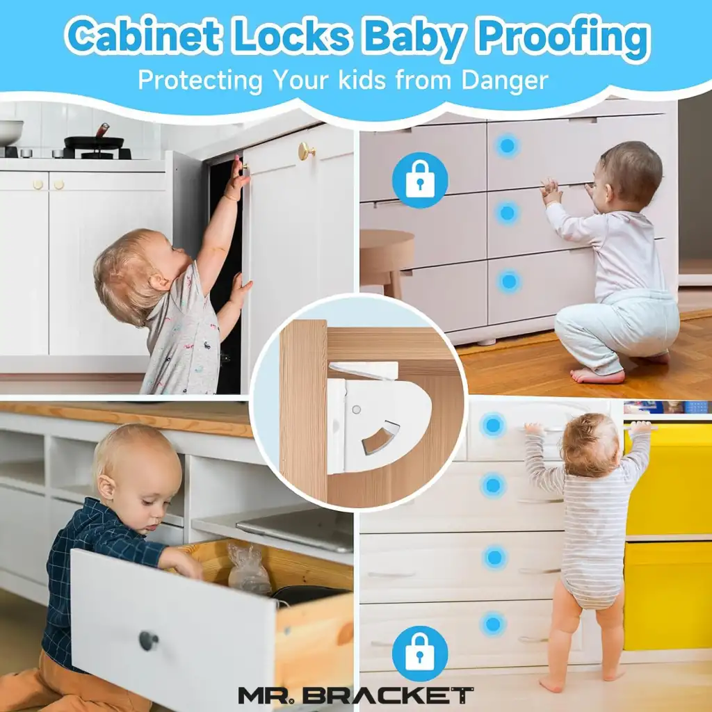 10'lu Bebek Çocuk Güvenliği Gizli Dolap Çekmece Kilidi - Geliştirilmiş Versiyon 3M Yapışkanlı Kilit