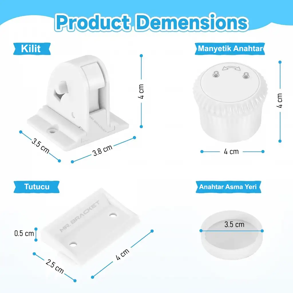 4 Kilit + 1 Anahtar Gizli Manyetik Dolap Çekmece Kilidi - Yapışkanlı Bebek Güvenliği Çocuk Kilit