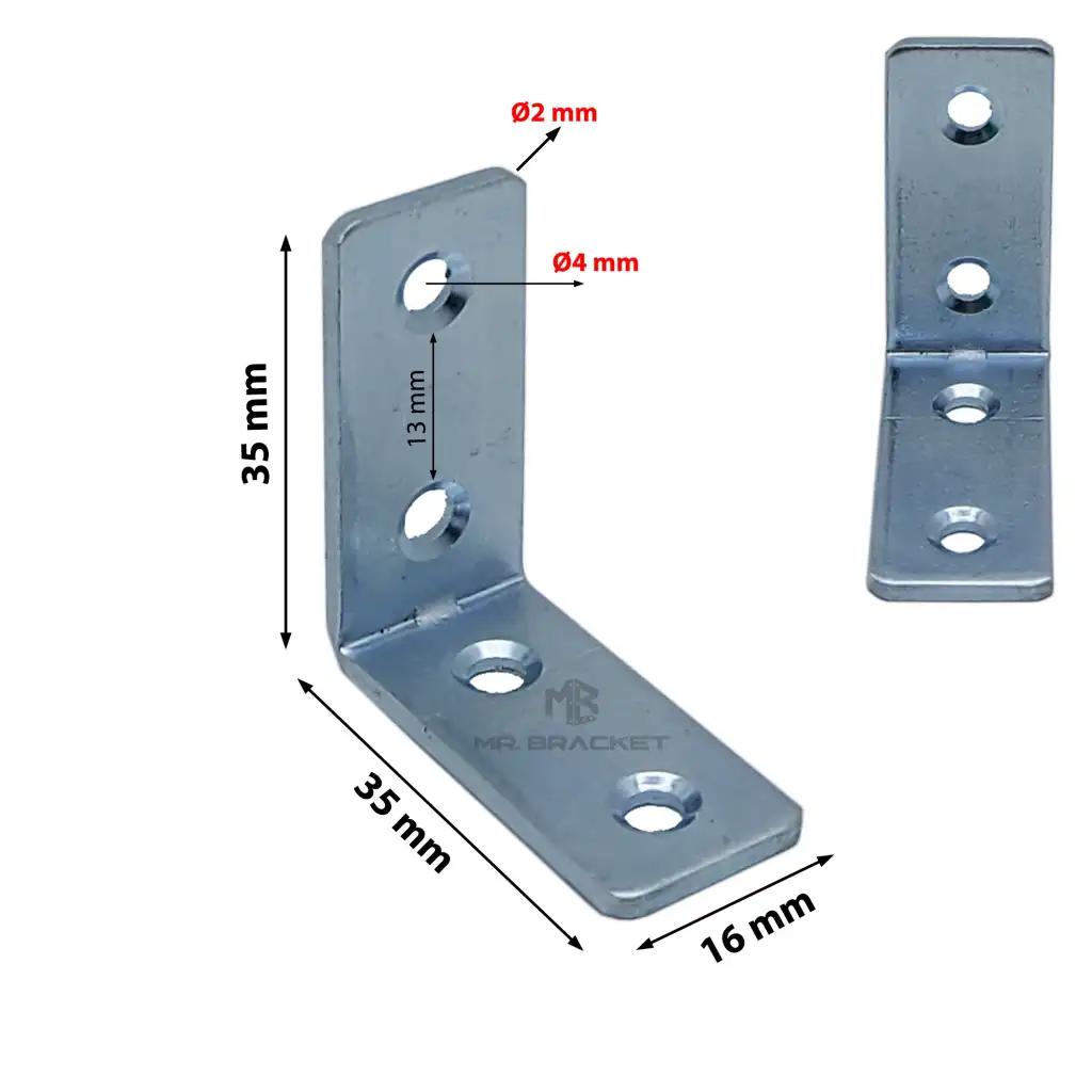 Toptan 300 ad. - 16x35x35mm L Demir Gönye Köşebent - Mobilya Dolap Köşe Birleştirme Bağlantı Aparatı